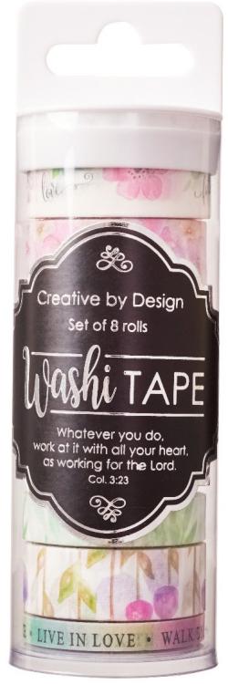 Get creative with this set of washi tapes. The perfect addition to the innovative person s collection, these 8 rolls of washi tapes will bring vibrancy and color to any project. Perfect for scrapbooking those special moments, these 8 rolls feature a floral watercolor design, some with a faith based message. The possibilities for what can be created with washi tape are endless. From use on glass jars, phone cases, electronics, or journals, washi tape can be used on just about anything you can think of embellishing.